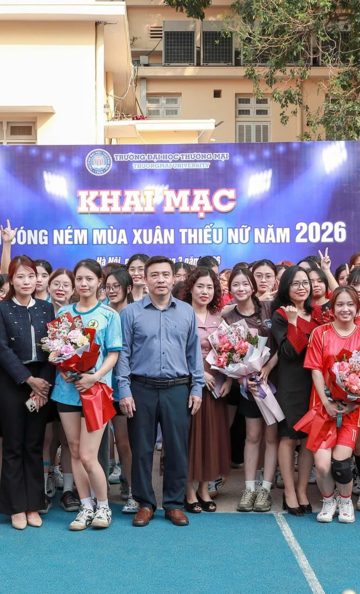 Chiều 04/03/2026, Giải bóng ném nữ Trường Đại học Thương mại đã chính thức khai mạc tại sân H1. Tham dự lễ khai mạc có cô Trang phó khoa cùng các thầy cô là đại diện lãnh đạo các Khoa, Phòng trong Nhà trường.